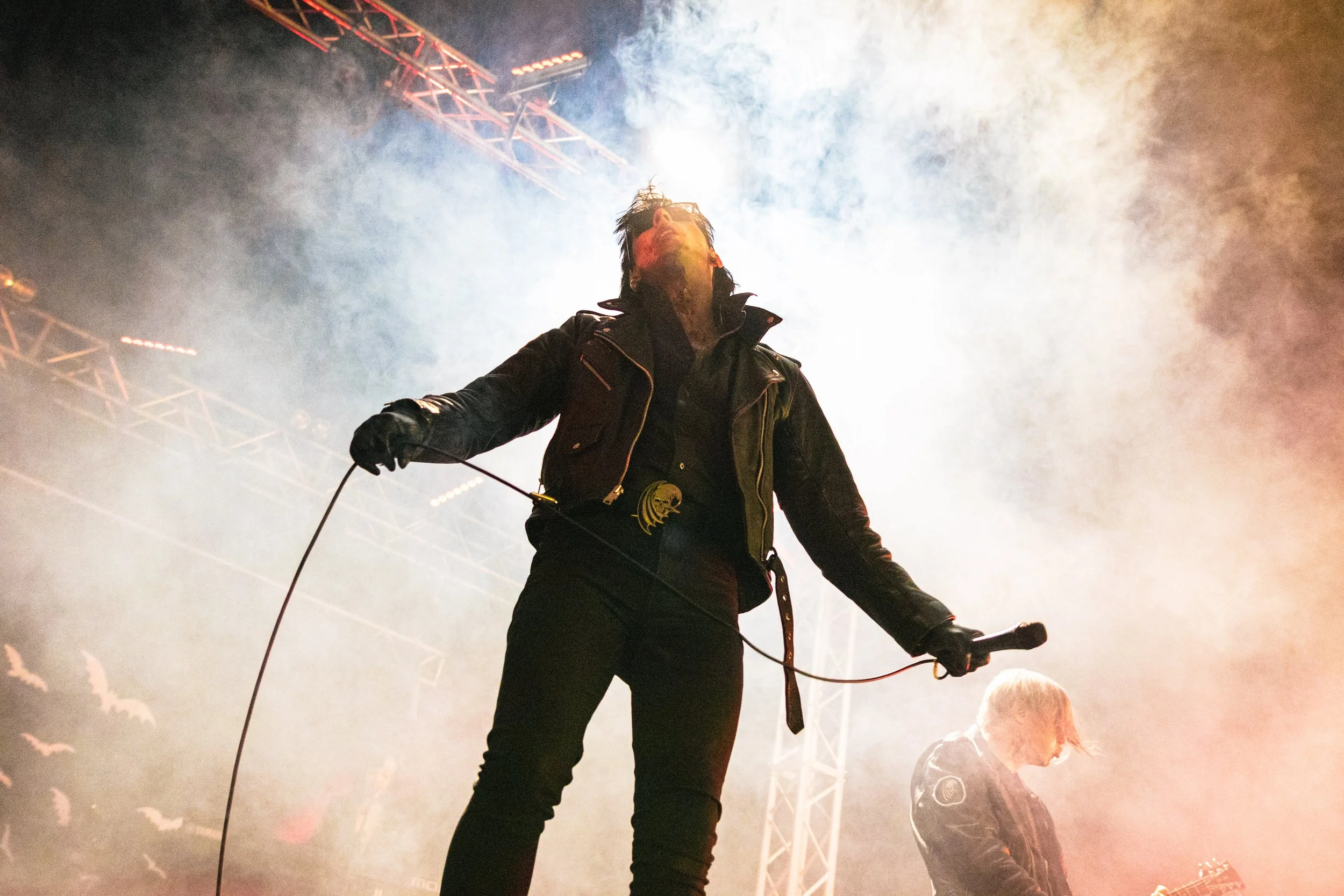 Now the day was hitting the onset of the end, it was time for the various headliners of the night, and first in this regard was Creeper. Having just released a new single and announced a new album, it was time for a new creative direction; instead of the wedding dress that Hannah Greenwood had worn on tours of not-so-ancient past, the first sight of Creeper that the crowd were greeted with was a crazy, bloody, disembodied simulacrum of Will Gould’s head, and what followed was forty minutes of theatrical, vaudevillian, intense insanity.